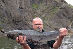 Á föstudaginn sl. veiddist fyrsti lax sumarsins á Hrauni, 103 cm lúsugur hængur. Þetta var þykkur og fallegur lax eins og myndin sýnir en hann veiddist við Engey sem er neðst á svæðinu. Laxinn gæti því hugsanlega vegið 23 til 24 pund en honum var auðvitað sleppt. Hraun og hin svæðin neðan virkjunar voru mikil stórlaxasvæði hér í den en á því varð breyting upp úr 1980. Laxinn hefur nú verið friðaður fyrir allri veiði á Hrauni og á svæðunum í kring í átta ár og ánægjulegt að hann sé smám saman að hasla sér völl aftur efst í dalnum, laxgengd hefur greinilega verið að aukast aftur á þessum svæðum síðustu árin. Urriðaveiðin hefur verið prýðileg á Hrauni það sem af er sumars þrátt fyrir hret og kuldatíð í maí og júní. Oft eru að fást 15 til 20 fiskar yfir daginn á stangirnar þrjár og eru þeir vænni en í fyrra, allt upp í 60 cm. Það er fyrst núna að það er að koma smá ylur í ánna og besti tíminn því fram undan. Sem fyrr, eru það þurrfluguveiðimenn sem eru að brillera á Hrauni en púpur og streamerar líka öflugir. Það er búin að vera mikil fluga síðustu vikurnar og urriðinn er yfirleitt vel á sig kominn. Við minnum veiðimenn á að gá eftir merkjum á urriðanum í Hrauni - en þar stendur nú yfir nú rannsóknarverkefni þar sem meta á vöxt, far og afföll urriða - einn þátturinn er að skoða hvort hitastig hafi áhrif á lifun á urriða sem sleppt er. Við hvetjum veiðimenn til að taka þátt í þessu verkefni og sleppa öllum merktum fiski aftur - en skrá jafnframt niður númer merkis og hitastig árinnar - auk hefðbundinna skráningarþátta. Birt með góðfúslegu leyfi SVAK