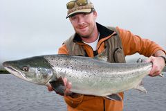 Veiðimaður í Hallá við Skagaströnd í lok ágúst sá nokkra laxa en náði ekki að setja í þá. Einn laxinn sá þó aumur á honum og gekk sjálfur á land. Um þetta má lesa á agn.is. "Við heyrðum í veiðimanni sem skaust í Hallá og veiddi eina kvöldvakt þegar farið var að líða á síðari hluta ágúst mánaðar. Kvaðst hann hafa mætt hóflega bjartsýnn að veiðihúsinu eftir allar þær hamfarafréttir sem hafa dunið á okkur þetta árið," segir á agn.is. "Það kom veiðimanninum því nokkuð á óvart að sjá að það væri þó búið að skrá þetta marga laxa í veiðibókina. Þeir sem höfðu veitt daginn áður en okkar maður var á ferðinni höfðu landað tveimur 14 punda löxum, báðum nýgengnum og lúsugum. Það var því einhver von til staðar. Þegar komið var að ánni sáust fljótlega nokkrir laxar neðarlega í ánni. Eftir að 2-3 flugum hafði verið kastað á þá komst styggð að löxunum. Fóru þeir að hringsóla um hylinn og tóku loks strikið niður ánna og hurfu sjónum. Þá bar heldur betur til tíðinda. Um það bil 50 metrum neðar lenti einn laxinn á mjög grunnu vatni og spriklaði sjálfur á land. Þetta var eini laxinn sem kom á land þann daginn en okkur heyrðist á veiðimanninum að hann hefði svo sannarlega verið betri en enginn." Þá segir Agninu að Hallá hafi verið ágæt í ágúst. Um sextíu laxar séu komnir á land þrátt fyrir að áin hafi fundið vel fyrir hinu mikla þurrkasumri og verið "hóflega ástunduð".gar@frettabladid.is