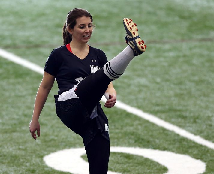 Kona reynir að komast að í NFL-deildinni 3. mars 2013 22:15 Silberman á æfingu í dag. Lauren Silberman er búin að skrá sig á spjöld sögunnar en hún er fyrsta konan sem reynir að komast að hjá liði í NFL-deildinni. Silberman tekur þessa dagana þátt í æfingabúðum fyrir leikmenn sem vilja komast inn í deildina. Það hefur engin kona gert áður. Silberman ætlar ekki að takast á við tröllin sem leika í deildinni heldur er hún að reyna að komast að sem sparkari. Fáum sögum fer reyndar af því hvað hún getur sparkað langt. Hin 28 ára gamla Silberman gerir sér grein fyrir því að hún á ekki mikla möguleika að komast að í deildinni. "Ég er að leggja hart að mér en er samt raunsæ á mína möguleika. Ég vona samt að þetta framlag mitt virki hvetjandi á aðrar konur sem vilja elta drauma sína. Ég hef fengið ótrúlegan stuðning alls staðar að úr heiminum," sagði Silberman. NFL Mest lesið Sakaður um svindl á HM í pílukasti Sport Óttast að Isak hafi fótbrotnað Enski boltinn Hleður Kjartan lofi eftir frábæra frumraun með Aberdeen Fótbolti Hjalti Þór ráðinn aðalþjálfari Álftaness Körfubolti Ótrúleg tíðindi á HM í pílukasti: „Mikið sjokk“ Sport HM í pílu: Littler flaug áfram og kvöldinu lauk með spennutrylli Sport Dómarinn hlýtur mikið lof fyrir stundarbræði í garð Jake Paul og Joshua Sport Túfa gerir þriggja ára samning í Svíþjóð Fótbolti Arnór Ingvi orðinn leikmaður KR Íslenski boltinn Albert skoraði í fyrsta sigri Fiorentina Fótbolti Fleiri fréttir Hjalti Þór ráðinn aðalþjálfari Álftaness HM í pílu: Littler flaug áfram og kvöldinu lauk með spennutrylli Hleður Kjartan lofi eftir frábæra frumraun með Aberdeen Óttast að Isak hafi fótbrotnað Ótrúleg tíðindi á HM í pílukasti: „Mikið sjokk“ Sakaður um svindl á HM í pílukasti Túfa gerir þriggja ára samning í Svíþjóð Arnór Ingvi orðinn leikmaður KR Albert skoraði í fyrsta sigri Fiorentina Rúnar sótti sinn fyrsta sigur sem þjálfari Wetzlar Bæjarar aftur á sigurbraut Tvenna frá Rogers tryggði Villa sigur gegn Manchester United Kolbrún María kom við sögu í endurkomu Hannover Haukur með sjö mörk og Magdeburg rétt marði botnliðið Barcelona með fjögurra stiga forskot inn í nýtt ár Alvöru innkoma: Kjartan með stoðsendingu gegn Celtic í sínum fyrsta leik Sandra María hetjan og með þeim markahæstu í Þýskalandi Katla skoraði annan leikinn í röð Tómas Bent og félagar unnu Rangers og náðu átta stiga forskoti á toppnum Breiðablik kaupir Jónatan frá Norrköping Rúmlega áttræður Moustafa endurkjörinn forseti IHF með yfirburðum Pílukastarinn biðst afsökunar á að hafa fallið á lyfjaprófinu og öllum lygunum Næstframlagshæstur í grátlegu tapi Hildur áfram í bikarnum og Amanda enn á toppnum Fimmta sinn sem Arsenal er á toppnum um jólin: Unnu ekki titilinn í fyrstu fjögur skiptin „Viljum við að okkar verði minnst fyrir að vera skræfur?“ Fékk næstum 4,5 milljóna króna sekt fyrir að sýna dómara fingurinn Tvær títanplötur settar í Jake Paul eftir kjálkabrotið „Ef dómarinn hefði sinnt sínu starfi almennilega hefði Romero ekki fengið spjald“ Haaland gaf barnabarni Hareide gjöf Sjá meira