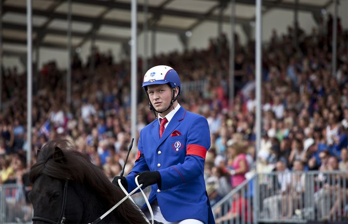 Gústaf missti af gullinu á lokasprettinum - myndir 9. ágúst 2013 15:11 Gústaf Ásgeir Hinriksson. Mynd/Rut Sigurðardóttir Gústaf Ásgeir Hinriksson og Björk frá Enni urðu að sætta sig við fjórða sætið í slaktaumatölti ungmenna á HM íslenska hestsins í Berlín en úrslitakeppnin fór fram í dag. Þau hreinlega misstu af heimsmeistaratitlinum á lokasprettinum. Rut Sigurðardóttir, ljósmyndari Vísis og Fréttablaðsins á mótinu, tók þessar myndir hér fyrir ofan. Gústaf Ásgeir náði bestu einkunninni í forkeppninni og var efstur eftir frjálsu ferðina og hæga töltið. Gústaf og Björk urðu hinsvegar fyrir truflun í slaka tauminum og það kostaði þau verðlaunasætið. Gústaf Ásgeir og Björk frá Enni voru með 8,50 einkunn fyrir frjálsu aðferðina og 8,00 í einkunn fyrir hæga töltið og því með góða forystu. Einkunnin fyrir slaka tauminn var hinsvegar aðeins 4,17 sem var mikið áfall fyrir íslenska hópinn. Hin þýska Charlotte Passau á Una frá Kronshof varð heimsmeistari en þau fengu 6,92 í einkunn. Landi hennar Christopher Weiss á Víg frá Eikarbrekku varð annar með 6,84 í einkunn og í þriðja sætinu varð síðan hin austurríska Carina Perndl á Reidartýr frá Stefanihof en þau fengu 6,83 í einkunn. Það er hægt að sjá öll úrslitin í slaktaumatöltinu inn á Hestafréttir.is eða með því að smella hér. Hestar Mest lesið Dönsk landsliðskona eignaðist barn tólf vikum fyrir tímann Handbolti Viðtökurnar á Anfield munu ekki breyta neinu Fótbolti Loksins þorði einhver í Kolbein sem stígur aftur inn í hringinn Sport Kærastan tók eftir því að eitthvað var að Handbolti Segir allt tal um leiðinlegan fótbolta hjá Arsenal heimskulegt Enski boltinn Guardiola segir að dómararnir hafi verið á móti City í áratug Enski boltinn „Örugglega nokkrir Fantasy-þjálfarar ósáttir“ Enski boltinn Skagamenn senda Kanann heim Körfubolti „Það verður hundleiðinlegt að spila við Val“ Íslenski boltinn „Haaland er þetta góður“ Enski boltinn Fleiri fréttir Sjáðu mörkin úr kærkomnum sigri West Ham og tvennu Haalands Van Dijk frábiður sér letilega gagnrýni Rooneys Loksins þorði einhver í Kolbein sem stígur aftur inn í hringinn Segir allt tal um leiðinlegan fótbolta hjá Arsenal heimskulegt Skagamenn senda Kanann heim Dönsk landsliðskona eignaðist barn tólf vikum fyrir tímann Guardiola segir að dómararnir hafi verið á móti City í áratug Viðtökurnar á Anfield munu ekki breyta neinu Dagskráin í dag: Sú elsta og virtasta, enska úrvalsdeildin og Extra Tilþrif 5. umferðar: Jukic stal senunni „Örugglega nokkrir Fantasy-þjálfarar ósáttir“ Lygilega jafnt á toppnum eftir sigur AC Milan „Haaland er þetta góður“ Ítalinn hoppaði upp fyrir Alcaraz eftir sigur í París Spánarmeistararnir halda í við toppliðið Ólíkar niðurstöður hjá landsliðsmönnunum „Það verður hundleiðinlegt að spila við Val“ Uppgjörið: Þýskaland - Ísland 29-31 | Svöruðu skellinum með frábærum sigri Hermann tekinn við Val Viðar Ari lagði upp tvö í Íslendingaslag Daníel Leó hetjan í dramatískum sigri Elín Klara markahæst en Sävehof datt út úr bikarnum Ísak Bergmann og félagar nálgast Evrópusæti Annað tap spútnikliðsins kom í Manchester Loksins West Ham-sigur í London Kristian Nökkvi skoraði í Íslendingaslagnum Arna og Sædís nánast öruggar með silfrið Bölvun fylgir úrslitaleik Meistaradeildarinnar Hólmbert skoraði í Suður-Kóreu og stjórnaði sigursöngvum eftir leik Fórnar titlinum sínum fyrir baráttu kvenna Sjá meira