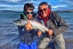9 ára með fallegan flugulax í Hítará Karl Lúðvíksson skrifar 23. júní 2014 14:21 Hafþór með laxinn sem hann veiddi í morgun Veiðimenn þurfa ekki að vera háir í loftinu til að veiða vel og það sannaðist heldur betur í Hítará í morgun. Bjarni Júlíusson fyrrum Formaður SVFR er þar við veiðar ásamt fjölskyldunni og einn af yngstu veiðimönnunum gerði sér lítið fyrir og náði í lax í Húshyl uppá eigin spýtur með smá aðstoð frá frænda sínum. Þeir félagar Hafþór Bjarni og Ólafur Bjarni skákuðu þar reyndustu mönnunum í hollinu algjörlega við. Bjarni sendi okkur smá pistil um veiðina í morgun ásamt mynd af veiðikappanum Hafþóri með laxinn góða.Hér mætti fjölskyldan spennt í Hítará í gær. Búið að vera mjög rólegt, einungis einn lax kominn á land. En það var nú samt slangur af laxi, sáum fiska í Kverk og á Breiðinni. Þeir sem fóru í Langadrátt og Grettisstillur urðu líka varir við fiska. Hann er greinilega búinn að dreifa sér dálítið um ána. En í gær náðum við feðgar tveimur fiskum, ég á Breiðinni og Júlíus Bjarni í Kverkinni. Það svo dálítið skondið því við settum í fiskana með 5 sek millibili. Báðir að þreyta á sama stað á sama tíma.Byrjuðum svo morguninn á að setja í stórlax sem rauk upp og niður Breiðina og náði að losa sig eftir æsilega viðureign. Þeir frændurnir Hafþór Bjarni (9 ára) og Ólafur Bjarni (12 ára) ætluðu ekki að láta dýrið sleppa, en svona er það stundum. Hafþór rölti í rólegheitunum uppfyrir hús og sá tvo laxa neðarlega í Húshyl. Hann tók lausa stöng sem hékk við húsið og setti þunga túbu undir. Brúna Francis. Svo var „uppstrímað“. Ég hafði nú ekki mikla trú á þessu og reyndi að draga hann með mér uppí Langadrátt, en hann var búinn að ákveða að þessum löxum myndi hann ná og það var ekki viðlit að hreyfa hann.Ég ákvað að fara þá bara einn uppeftir og þar sem mamma hans var að kasta í Kverkinni, þá var það ekkert mál. Þegar ég keyri yfir brúnna, þá sé ég ekkert til drengsins. Ég keyrði því niður á bílaplanið við Kverkina, labbaði fram á brúnina og tók stöðuna á drengnum. Jú þar var hann á klöppunum neðan við Húshylinn með stönginga í keng. Þetta var sem sé fjarki sem guttinn hafði tekið. 200m neðan sá ég svo frú Þórdísi, móður drengsins, og ég get svarið að hún gekk á vatninu henni lá svo á að fara að aðstoða. En þarna var fallegum smálaxahæng landað í sandvikinu beint framaf húsinu eftir snarpa viðureign. Stangveiði Mest lesið Fleiri lokatölur úr laxveiðiánum Veiði Laxveiði á næsta fræðslukvöldi SVFR Veiði 27 fiska holl í Tungufljóti Veiði 37 punda risalax úr ánni Dee Veiði Veiðikortið í verðlaun hjá Veiðivísi á Facebook Veiði Náðu 13 löxum í Brennunni á einum degi Veiði Nokkur aukning í brotum á veiðireglum í vinsælum ám Veiði Laxinn bíður betra vatns Veiði Lifnar yfir Ásgarði í Soginu Veiði Tímabilið byrjar bara ágætlega Veiði
