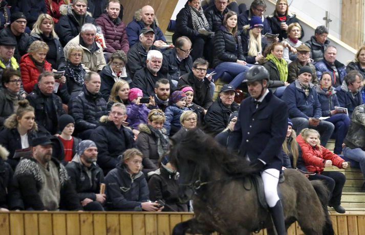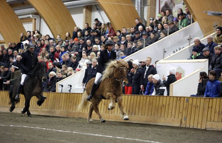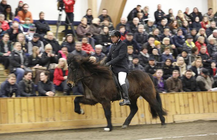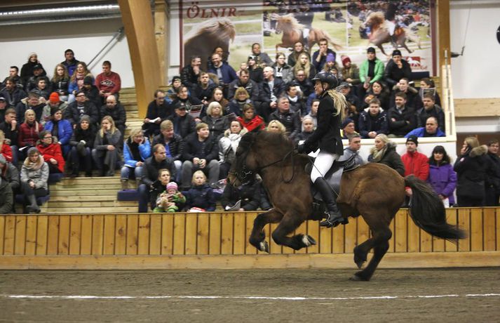 Stemning í stúkunni í Sprettshöllinni Telma Tómasson skrifar 19. febrúar 2015 14:30 Áhorfendur fjölmenntu í Sprettshöllina og stemningin var stórfín. Vísir/Valli Margt var um manninn og stemning í stúkunni í Sprettshöllinni í Kópavogi í gærkvöldi þegar keppni fór fram í fimmgangi í áhugamannadeildinni. Þórunn Hannesdóttir á glæsihestinum Austra frá Flagbjarnarholti sigraði örugglega og skaut öllum strákunum ref fyrir rass í úrslitunum. Þórunn átti brekkuna og var klappað lof í lófa fyrir sýningu sína. Áhorfendur létu ekki leiðindaveður trufla sig og mættu í Sprettshöllina til að hvetja sitt fólk áfram, eins og sjá má á meðfylgjandi myndasyrpu.Þórunn Hannesdóttir og Austri frá Flagbjarnarholti.Í áhugamannadeildinni urðu úrslit þessi: 1. Þórunn Hannesdóttir / Austri frá Flagbjarnarholti 6,52 2. Árni Sigfús Birgisson / Sjór frá Ármóti 6,19 3. Sigurbjörn J Þórmundsson / Leistur frá Hemlu II 5,90 4. Þorvarður Friðbjörnsson / Þengill frá Þjóðólfshaga 1 5,79 5. Játvarður Jökull Ingvarsson / Kappi frá Dallandi 5,69 6. Leó Hauksson / Bú-Álfur frá Vakurstöðum 5,62 7. Sigurður Grétar Halldórsson / Álmur frá Skjálg 4,05 Keppni í hestaíþróttum er nú að komast á fullt skrið og ber Meistaradeildina hæst, en frá henni er sýnt beint á Stöð 2 Sport aðra hverja viku. Næsta keppni fer fram í fimmgangi fimmtudaginn 26. febrúar og hefur Vísir heimildir fyrir því að þar mæti knapar með mjög sterka hesta til leiks, meðal annars kemur Íslandsmeistarinn í fimmgangi Hulda Gústafsdóttir með hinn fasmikla Birki frá Vatni. Á Stöð 2 Sport eru einnig sýndir upprifjunarþættir Meistaradeildarinnar, einnig á fimmtudagskvöldum, þar sem farið er yfir hverja keppnisgrein, rætt við sigurvegara og dómarar skýra einkunnagjöf og sýningar. Hér fyrir neðan má sjá myndasyrpu frá mótinu í Sprettshöllinni. Hestar Mest lesið Umboðsmaður hótaði leikmanni með byssu Fótbolti Söguleg byrjun OKC á tímabilinu Körfubolti Emilía opnaði markareikninginn gegn Ingibjörgu Fótbolti O'Neil tekur ekki við Úlfunum á ný Fótbolti Yfirburðir Sunderland dugðu ekki til sigurs Enski boltinn Alfreð klæddist kvennatreyjunni á leiknum við Ísland Handbolti „Ísland í hópi með Norður-Kóreu og Íran“ Sport Spence og van de Ven báðust afsökunar Fótbolti Kærastan tók eftir því að eitthvað var að Handbolti Forðuðu sér frá bráðsmitandi óléttu í Fram Handbolti Fleiri fréttir Umboðsmaður hótaði leikmanni með byssu Söguleg byrjun OKC á tímabilinu O'Neil tekur ekki við Úlfunum á ný Emilía opnaði markareikninginn gegn Ingibjörgu Fyrsti sigur í hús hjá Genoa Yfirburðir Sunderland dugðu ekki til sigurs Segir Wirtz enn vera að venjast leikjaálaginu Spence og van de Ven báðust afsökunar Telja United mun líklegra til að enda í sjöunda en öðru sæti Alfreð klæddist kvennatreyjunni á leiknum við Ísland Rekinn eftir aðeins fimm mánuði í starfi Leitin heldur áfram og Lúðvík leysir af Fanndís hefur ekkert heyrt frá Val og íhugar að hætta Ósammála um Gyökeres: „Hefðirðu verið ánægður með fjögur mörk?“ Eigandi Forest býður fram aðstoð eftir stunguárásina Forðuðu sér frá bráðsmitandi óléttu í Fram Íslandsmeistararnir mæta bikarmeisturunum „Ísland í hópi með Norður-Kóreu og Íran“ „Búnt á skenkinn, Halli Egils á vegginn“ Gæti tekið við Úlfunum ellefu mánuðum eftir að hafa verið rekinn frá þeim Sjáðu mörkin úr kærkomnum sigri West Ham og tvennu Haalands Van Dijk frábiður sér letilega gagnrýni Rooneys Loksins þorði einhver í Kolbein sem stígur aftur inn í hringinn Segir allt tal um leiðinlegan fótbolta hjá Arsenal heimskulegt Skagamenn senda Kanann heim Dönsk landsliðskona eignaðist barn tólf vikum fyrir tímann Guardiola segir að dómararnir hafi verið á móti City í áratug Viðtökurnar á Anfield munu ekki breyta neinu Dagskráin í dag: Sú elsta og virtasta, enska úrvalsdeildin og Extra Tilþrif 5. umferðar: Jukic stal senunni Sjá meira