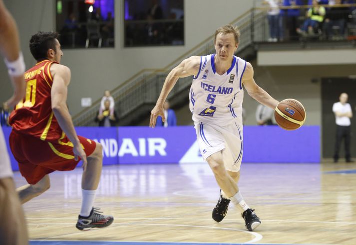 Umfjöllun, viðtöl og myndir: Ísland - Svartfjallaland 84-102 | Strákarnir fengu líka silfur Tómas Þór Þórðarson í Laugardalshöll skrifar 6. júní 2015 17:30 Íslensku strákarnir með silfrið í Höllinni í dag. vísir/andri marinó Ísland tapaði úrslitaleiknum gegn Svartfjallalandi í körfuboltakeppni karla á Smáþjóðaleikunum í Laugardalshöll í dag, 102-84, og varð að sætta sig við silfrið í enn eitt skiptið. Það verður einfaldlega að segja að Svartfellingarnir voru miklu sterkari eins og tölurnar gefa til kynna, en íslenska liðið átti í miklum vandræðum með vel mannað lið gestanna. Svartfjallaland spilaði firnasterka vörn og græddi á henni mikið af auðveldum stigum. Íslensku strákarnir töpuðu boltanum í fyrstu þremur sóknum sínum á meðan gestirnir skoruðu níu stig í röð. Svartfellingarnir eru stórir og sterkir og áttu auðvelt með að skora undir körfunni til að byrja með. En þeir hættu því fljótlega og fóru bara að skjóta fyrir utan. Hittni svartfellsku leikmannanna fyrir utan var engu lagi lík í fyrri hálfleik. Eiginlega bara algjört rugl. "Ég hef ekki séð svona áður. Ekki síðan ég var í þessu," sagði Einar Bollason léttur í bragði en samt furðu lostinn við blaðamenn í hálfleik. Svartfellingar hittu úr tólf af 22 skotum sínum fyrir utan og voru með 55 prósent nýtingu fyrir utan þriggja stiga línuna. Það var sama hvað þeir reyndu, nánast allt fór ofan í. Þá voru þeir með 83 prósent nýtingu úr teignum. Íslensku strákarnir fóru erfiðlega af stað en unnu sig inn í leikinn og minnkuðu muninn niður í tíu stig, 47-37, þegar um tvær og hálf mínúta var eftir af fyrri hálfleik. Svartfellingar gáfu þá í og voru með 20 stiga forskot í hálfleik. Þar munaði um þrjá þrista sem liðið setti á lokakaflanum.Ragnar Nathanaelsson rís hæst í teig Svartfellinga í kvöld.vísir/andri marinóLogi Gunnarsson byrjaði vel fyrir Ísland og skoraði tólf stig í fyrri hálfleik, þar af þrjá þrista úr fjórum tilranum. Íslenska liðið hitti úr sex af 13 fyrir utan í fyrri hálfleik sem er mjög nýting en ekkert á miðað við Svartfellingana. Eftir skrekk í byrjun var sóknarleikur íslenska liðsins betri og fóru þeir að finna Hlyn undir körfunni með flottu spili, en fyrirliðinn skoraði tólf stig í fyrri hálfleik. Munurinn þó 20 stig þegar liðin gengu til búningsklefa, 61-41. Ísland vann þriðja leikhlutann með þremur stigum og hélt Svartfjallalandi í 15 stigum. Mikið munaði um að gestirnir hættu að hitta eins og óðir menn fyrir utan og settu aðeins niður einn þrist af sex í þriðja leikhluta. Síðasti fjórðungurinn var svo bara spurning um hversu stór sigurinn yrði, en mínúturnar mikilvægar fyrir Craig Pedersen og aðstoðarmenn hans til að sjá liðið spila keppnisleiki í aðdraganda stóru stundarinnar. Okkar menn hættu þó ekkert og létu valta yfir sig á endasprettinum, þvert á móti. Martin Hermannsson, sem spilaði vel í leiknum og skoraði 11 stig, setti niður þrist og í kjölfarið gerði Jakob slíkt hið saman efti að Kristófer varði skot með tilþrifum.Fyrirliðinn Hlynur Bæringsson var stigahæstur í kvöld með 19 stig.vísir/andri marinóÞeir minnkuðu muninn niður í þrettán stig og fór þá aðeins um Svartfellingana. Elvar Már Friðriksson kom inn á í fjórða leikhlutanum og setti einnig niður þriggja stiga skot, en íslenska liðið fékk framlag úr öllum áttum. Bilið var þó of stórt þar sem Svartfjallaland náði með 23 stiga forystu, 87-64, en endaspretturinn flottur hjá okkar strákum. Lokatölur, 102-84, og mikilvægar mínútur komnar í erfiðum keppnisleik í aðdraganda stóru stundarinnar. Strákarnir eru auðvitað að fara á Evrópumótið í Berlín seinna í sumar og var leikurinn því góð æfing fyrir það, en í Berlín mun íslenska liðið mæta liðum sem eru mun betri en Svartfjallaland. Það hefði verið gaman að sjá hvernig leikurinn hefði spilað ef Jón Arnór, Haukur Helgi, Hörður Axel og Pavel væru með, en að sama skapi fengu leikmenn sem reyna að spila sig inn í EM-hópinn gott tækifæri til að sanna sig. Hlynur Bæringsson var stigahæstur í kvöld með 19 stig og fimm fráköst, en Jakob Örn Sigurðarson skoraði 17 stig og tók sjö fráköst. Logi Gunnarsson spilaði einnig vel og skoraði 14 stig. Þá var Kristófer Acox nokkuð öflugur í varnarleiknum og tók níu fráköst og varði þrjú skot. Silfrið staðreynd hjá okkar strákum en besta liðið, Svartfjallaland, sannfærandi sigurvegarar á 16. Smáþjóðaleikunum.Ísland - Svartfjallaland 84-102 (18-28, 23-33, 18-15, 25-26)Ísland: Hlynur Elías Bæringsson 19/5 fráköst, Jakob Örn Sigurðarson 17/7 fráköst, Logi Gunnarsson 14, Martin Hermannsson 11/5 stoðsendingar, Elvar Már Friðriksson 6, Ægir Þór Steinarsson 6/6 stoðsendingar, Kristófer Acox 4/9 fráköst, Brynjar Þór Björnsson 3, Ragnar Ágúst Nathanaelsson 2/5 fráköst, Helgi Már Magnússon 2.Svartfjallaland: Milutin Dukanovic 15, Suad Sehovic 15/4 fráköst, Vladimir Dasic 13/5 fráköst, Blagota Sekulic 11, Nemanja Milosevic 10, Nikola Pavlicevic 10/6 stoðsendingar, Radosav Spasojevic 9, Nemanja Vranjes 9/5 fráköst/5 stoðsendingar, Aleksa Popovic 8, Petar Popovic 2.Craig Pedersen ræðir við strákana í leikhléi í leiknum í kvöld.vísir/andri marinóCraig: Lærðum hvernig við nálgumst leikina á EM. "Eftir hæga byrjun gerðum við fullt af góðum hlutum. Við skorum 84 stig á móti góðu, stóru og sterku liði," sagði Craig Pedersen, þjálfari Íslands, við Vísi eftir leik. "Við fengum mikið af góðum skotum sem er eitthvað sem við verðum að gera á EM." Leikurinn í dag var fínt próf fyrir EM þar sem Ísland mætir nokkrum af allra sterkustu körfuboltaþjóðum heims. "Þetta er lið sem við þurfum að spila gegn 