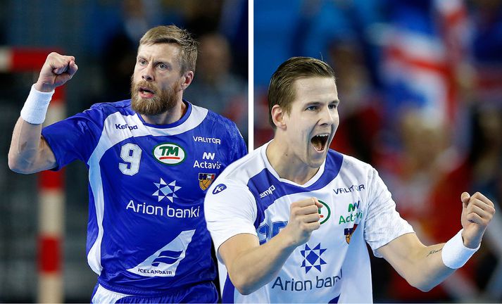 Bjarki Már Elísson var miklu betri í vinstra horninu en Guðjón Valur Sigurðsson á HM í handbolta í Frakklandi þegar kemur að fjölda marka eða skotnýtingu Vinstri hornamennirnir Guðjón Valur Sigurðsson og Bjarki Már Elísson voru tveir af þremur markahæstu mönnum íslenska landsliðsins á HM í handbolta í Frakklandi. HBStatz tók saman ítarlega tölfræði á heimsmeistaramótinu og hefur nú birt samanburð á skotnýtingu þeirra Guðjóns Vals og Bjarka Más. Það vekur athygli að Bjarki tekur átta fleiri skot úr vinstra horninu og hann nýtir líka skotin sín 32 prósent betur úr sinni stöðu. Bjarki Már Elísson skoraði úr 23 af 29 skotum sínum sem gerir 79 prósent skotnýtingu. Hann tók öll skotin sín utan af velli. Guðjón Valur Sigurðsson skoraði 24 mörk úr 38 skotum sem gerir 63 prósent skotnýtingu. Sjö af mörkum Guðjón Vals komu af vítalínunni en hann nýtti 70 prósent víta sinna og því „bara“ 61 prósent skota sinna utan af velli. Samanburður á skotum þeirra úr vinstra horninu vekur mesta athygli. Bjarki Már nýtir 13 af 18 skotum sínum úr vinstra horninu eða 72 prósent. Guðjón Valur er aftur á móti með aðeins 10 skot og 40 prósent skotnýtingu úr vinstra horninu. Bjarki Már er að skora níu fleiri mörk úr vinstra horninu heldur en Guðjón Valur þrátt fyrir að spila 83 færri mínútur (135:35) en Guðjón Valur (218:55). Guðjón Valur Sigurðsson og Bjarki Már Elísson eru báðir með 86 prósent skotnýtingu úr hraðaupphlaupum en Guðjón Valur er með tvöfalt fleiri mörk úr hraðaupphlaupum (12) en Bjarki (6) samkvæmt skráningu HBStatz.