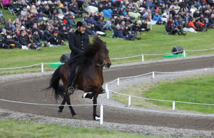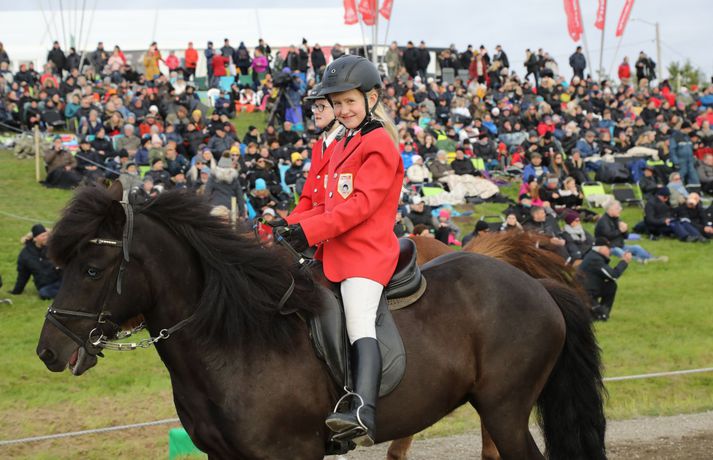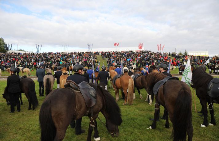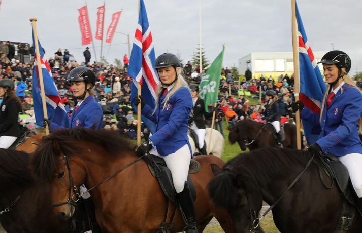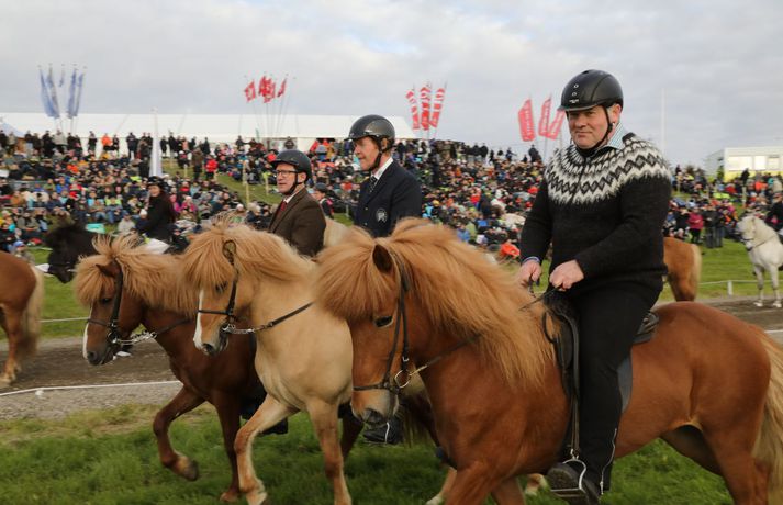 Formleg setning 23. Landsmóts hestamanna fór fram í gærkvöldi í Víðidal í Reykjavík. Áskell Heiðar Ásgeirsson, framkvæmdastjóri mótsins, sagði í samtali við Vísi að á bilinu fimm til sex þúsund manns hafi verið viðstaddir setninguna. Rjóminn af íslenska hrossastofninum er samankominn á landsmótinu þar sem um þúsund hross taka þátt. Keppt hefur i verið í flestum greinum frá því á sunnudaginn síðasta og lýkur mótinu á sunnudag klukkan 16. Dagur B. Eggertsson borgarstjóri setti mótið í blíðskaparveðri. Hann sagði meðal annars að Reykjavík væri höfuðborg íslenska hestsins og hann væri stoltur af að vera Reykvíkingur þegar hann liti yfir hið glæsilega keppnissvæði í Víðidalnum.Til að fylgjast með úrslitum nota mótsgestir nýtt íslenskt app, LH Kappa, og er það búið að raða sér á toppinn yfir vinsælustu öpp landsins í bæði App Store og Google Play.Glæsileg dagskrá er í Víðidalnum alla helgina. Á föstudags – og laugardagskvöld er dansleikir þar sem fram koma Albatross með Sverri Bergmann, Röggu Gísla og Sölku Sól, Axel Ó & co., Helgi Björns og reiðmenn vindanna, Stebbi Jak og Andri, Sigvaldi Helgi, Grétar og Hebbi, Dísella Lár og Magni Ásgeirsson, sem jafnframt er tónlistarstjóri mótsins. Hægt er að kynna sér dagskrá mótsins á vefnum landsmot.is.Sunnudaginn 1. júlí verður frítt inn á svæðið og áhersla verður lögð á fjölskylduna. Þá fer fram keppni í barna- og unglingaflokki og einnig munu Jói P. og Króli og Leikhópurinn Lotta koma fram. Alla mótsdagana verður sérstakt leiksvæði fyrir börn opið.Boðið verður upp á fræðslu um allt sem tengist íslenska hestinum á vegum verkefnisins Horses of Iceland. Meðal þess sem verður kynnt er; knapamerkjakerfið, líkamlegar mælingar á knöpum, járningar, ýmsar sýnikennslur frá knöpum Hrímnis, hestamiðstöðinni Sólvangi og Félags tamningamanna, rætt um fóðrun, fyrirlestur um val á hnökkum, greint frá meistararitgerð um skeiðgenið og sagt frá áhrifum skeiðgensins á ganghæfni íslenskra hrossa.Kvöldfréttir Stöðvar 2 voru í beinni útsendingu frá Víðidalnum í gærkvöldi þar sem rætt var við Þórdísi Gylfadóttur mótsstjóra, Áskel Heiðar Ásgeirsson framkvæmdastjóra og Magna Ásgeirsson skemmtanastjóra.Hér fyrir neðan er hægt að fletta myndasafni með fleiri myndum sem Bjarni Þór Sigurðsson tók fyrir Vísi.Hjörtur Bergstað, formaður Fáks, Sindri Sigurgeirsson, formaður Bændasamtakanna og Dagur B. Eggertsson borgarstjóri.Vísir/BjarniDoug Smith, varaforseti FEIF og Gunnar Sturluson, forseti FEIFVísir/BjarniFulltrúar ungu kynslóðarinnar í félagi tamningamanna voru fánaberar við setningu mótsins.Vísir/BjarniDísella Lárusdóttir óperusöngkona söng þjóðsönginn og fleira fyrir mótsgesti.Vísir/BjarniTalið er að á bilinu fimm til sex þúsund manns hafi verið í Víðidal í gærkvöld.Vísir/BjarniÁslaug Arna Sigurbjörnsdóttir, varaformaður Sjálfstæðisflokksins, fór fyrir hópreið við setningu mótsins.Vísir/BjarniTelma Tómasson tók þátt í töltkeppni á Baron frá Bala.Vísir/BjarniSigurður Vignir Matthíasson tók þátt í elsta flokki stóðhesta á Tindi frá Eylandi.Vísir/Bjarni