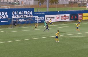 „Við stjórnuðum þessum leik, nema kannski síðustu tíu mínúturnar í fyrri hálfleik. Því miður náðum við ekki marki. Markvörðurinn varði vel í tvígang og þær eru sterkar varnarlega. Þær voru með átta til níu menn inni í teig þegar boltinn kom fyrir og það var erfitt að brjóta þær niður,“ sagði Pétur.