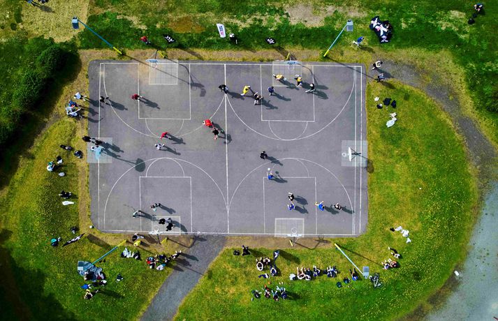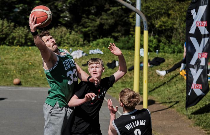 Það var liðið BBB sem sigraði eftir harða keppni og hlaut í verðlaun 70.000 kr. í beinhörðum peningum og bikar. Fasteignafélagið lenti í öðru sæti og hlaut í verðlaun 30.000 kr. Last Samurai endaði í þriðja sæti en efstu þrjú liðin fengu auk þess veglegar gjafir frá styrktaraðilum. Sigurður Orri Kristjánsson (t.v.) og Tommi Steindórs sáu um skipulag Streetball móts X977. Veðrið lék við leikmenn og áhorfendur. „Veðrið var allavega til fyrirmyndar þriðja árið í röð, enda pantað snemma í ár,“ sagði Tommi Steindórs, annar umsjónarmanna mótsins. „Það er gaman að sjá Streetball mótið vaxa jafnt og þétt ár frá ári og við höfum fulla trú á að það verði fastur liður hér á Klamratúni um ókomin ár,“ bætir Sigurður Orri við, sem sá um skipulag mótsins með Tomma. Það er X977 og KKÍ sem halda mótið í samstarfi við Subway, Útilíf og Egils Orku. Hér má sjá myndir frá mótinu. Fasteignafélagið endaði í öðru sæti á Streetball móti X977.Last Samurai endaði í þriðja sæti á Streetball móti X977. Klippa: Streetball mót X977 á Klamratúni