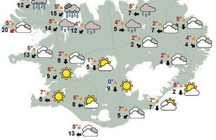 Veður Færð á vegum Mest lesið Nokkrar milljónir horfnar á örfáum vikum Innlent Rændur fyrir utan Costco um hábjartan dag Innlent Líta eigi á eignir landsbyggðafólks í Reykjavík sem sumarbústaði Innlent Sendi síðasta bréfið degi áður en fellibylurinn gekk yfir Innlent Kúgaðist og öskurgrét yfir lýsingum sonarins Innlent Valhöll auglýst til sölu Innlent Telur að aðrar ferðaskrifstofur muni fylgja í kjölfarið Viðskipti innlent Lögreglan vill ná tali af þessu fólki Innlent Tveir fá heilablóðfall á hverjum degi á Íslandi Innlent Handtóku menn á tvítugsaldri vegna stórfelldrar fölsunar rafrænna skilríkja Innlent Fleiri fréttir Léttir til suðvestanlands Verður líklega mikið eftir af snjó og klaka Hvasst, hlýtt og von á asahláku eða glerhálku „Þetta verður allt saman stórvarasamt í fyrramálið“ Gular veðurviðvaranir víða um land Frostið náði næstum 20 stigum á Sandskeiði Djúp lægð nálgast landið úr suðri Nýtt snjódýptarmet í Reykjavík í október Hlýni á föstudag og snjórinn geti horfið í næstu viku Appelsínugular viðvaranir orðnar að gulum Miklar tafir hjá strætó og vagnar fastir Allur floti Vegagerðar úti að ryðja snjó Veðurvaktin: Allt á kafi í snjó á metdegi Mildari spá í kortunum Gular viðvaranir vegna snjókomunnar suðvestantil Um sautján stiga frost í Skagafirði í nótt Frost komst í fjórtán stig í nótt Norðanáttin gengur niður Klukkustunda bið eftir dekkjaskiptum í vetrarparadísinni Stormur eða hvassviðri suðaustantil Gul viðvörun á landinu sunnan- og austanverðu Svöl norðanátt og hálka á vegum Stefnir í fyrstu hálku haustsins á höfuðborgarsvæðinu Rigning eða slydda suðvestantil Kólnar í veðri næstu daga Hægviðri og þokusúld framan af degi Hæg breytileg átt og dálítil væta Vindur fyrir norðan og rigning og þokusúld vestanlands Dálítil væta og hiti að átján stigum Tuttugu stig á nokkrum stöðum Sjá meira
