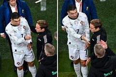 Evrópudeild UEFA Mest lesið Uppgjörið: Aserbaísjan - Ísland 0-2 | Öruggur sigur og úrslitaleikur framundan Fótbolti Ronaldo sá rautt og óð reiður til Heimis Fótbolti Vildi ekki svara spurningum um afa sinn, Donald Trump Golf Mætti á völlinn með jólamynd af Stefáni Teiti og frú Fótbolti Ronaldo svaraði Heimi og sagði hann sniðugan Fótbolti Frakkar á HM og Íslandi dugar jafntefli Fótbolti Leiðin á HM: Fjögur þúsund manns hurfu sporlaust Fótbolti KR - Njarðvík 88-97 | Dýrmætur sigur gestanna Körfubolti Heimir um Ronaldo: „Hans kjánaskapur að ráðast á okkar mann“ Fótbolti Hlakkar til að standa sig betur í föðurhlutverkinu Íslenski boltinn Fleiri fréttir Heimir um Ronaldo: „Hans kjánaskapur að ráðast á okkar mann“ Eggert Aron mætir fyrir úrslitaleikinn í Póllandi Skytturnar héldu fullkomnu flugi Englands áfram Frakkar á HM og Íslandi dugar jafntefli Ronaldo sá rautt og óð reiður til Heimis Sjáðu mörk ungu strákanna okkar Mætti á völlinn með jólamynd af Stefáni Teiti og frú „Ætla ekki að horfa oft á seinni hálfleikinn til að skemmta mér“ „Það var kominn tími til að ég myndi skora eitt mark“ „Mikill heiður fyrir mig og mína fjölskyldu“ „Sagði við Albert að ég ætlaði að reyna að finna hann eins mikið og ég gat“ Uppgjörið: Aserbaísjan - Ísland 0-2 | Öruggur sigur og úrslitaleikur framundan Haaland verður á HM og langri bið Noregs lýkur Sjáðu mörk Íslands í Bakú Lúxemborg - Ísland 1-3 | Aftur fögnuðu ungu strákarnir okkar Rómantík hjá Arnari: „Feginn að hann sé ekki einhver stuðningsfulltrúi“ Ensku stjörnurnar klæðast hugbreytandi inniskóm Jóhann Berg byrjar og spilar landsleik númer hundrað í kvöld Solskjær til í að taka við norska landsliðinu Stefnir Manchester United vegna „kynferðislegs og líkamlegs ofbeldis“ 23 ára forseti ítalsks félags: „Þú þarft ekki að vera karlmaður til að reka félag“ Franski rapparinn segir deilurnar við Mbappé bara misskilning „Þetta er mjög steikt“ Drap Messi-drauminn í fæðingu: „Ekki raunhæft“ Fantasýn: Bara nítján stigum frá toppnum á Íslandi Leiðin á HM: Fjögur þúsund manns hurfu sporlaust Hlakkar til að standa sig betur í föðurhlutverkinu Ronaldo svaraði Heimi og sagði hann sniðugan Sjáðu Glódísi Perlu tryggja sigur á Evrópumeisturum í tímamótaleik „Veit ekki alveg hvort þetta standist lög og reglur“ Sjá meira