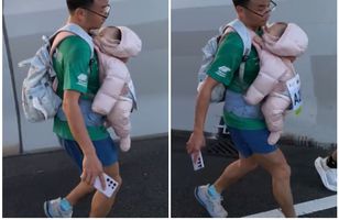 Hlauparinn var með keppnisnúmer og virtist hafa öll leyfi. Ástæðan var hins vegar sú að hann ætlaði að klára hlaupið með barnið í göngupoka framan á sér. Myndband sem hefur farið víða á samfélagsmiðlum sýnir mann hlaupa með ungbarn í burðarpoka á brjóstinu á West Kowloon-hraðbrautinni. Kveikti heitar umræður Tilraun hlauparans að bera ungbarnið með sér alla leið í Hong Kong-maraþoninu á sunnudag hefur vakið áhyggjur af öryggi og kveikt heitar umræður á netinu um hvernig manninum tókst að komast inn á hlaupaleiðina. View this post on Instagram A post shared by CNA (@channelnewsasia) Myndband sem hefur farið víða á samfélagsmiðlum, og virðist hafa verið tekið af öðrum hlaupara, sýnir manninn með ungbarn í burðarpoka á brjóstinu, bakpoka á bakinu, gleraugu sem renna niður á nefið og síma í hendinni. Myndbandið sýnir manninn hlaupa eftir West Kowloon-hraðbrautinni í átt að Stonecutters-eyju, sem er hluti af heilli maraþonleið milli fimm og tíu kílómetra merkja. Skráður í heilt maraþon karla Hlaupanúmer, sem gaf til kynna að hann hefði byrjað í fyrsta hópi í heilu maraþoni karla, var fest á vindhlíf barnsins. Frjálsíþróttasamband Hong Kong í Kína (HKAAA), skipuleggjendur Hong Kong-maraþonsins, staðfestu að „starfsmenn hlaupsins hafi beðið hlauparann sem braut reglur um að hætta og yfirgefa hlaupaleiðina tafarlaust á viðburðinum á sunnudag til að tryggja öryggi“. HKAAA bætti við að ef starfsmenn keppninnar yrðu varir við brot á opinberum reglum á keppnisbrautinni yrði viðkomandi þátttakandi beðinn um að hætta keppni og yfirgefa brautina tafarlaust, sem myndi leiða til brottvísunar. Banna slíkum einstaklingum þátttöku „Skipuleggjandinn áskilur sér rétt til að banna slíkum einstaklingum þátttöku í framtíðarhlaupum,“ sagði í yfirlýsingunni. HKAAA minnti hlaupara einnig á að fylgja opinberum keppnisreglum og forðast hvers kyns athæfi í hlaupinu sem gæti skapað hættu fyrir þá sjálfa eða aðra. Samkvæmt opinberum rauntímagögnum hóf hlauparinn, sem ber eftirnafnið Wang, keppni klukkan 6:25 og fór fimmtán km á tveimur klukkustundum og 20 mínútum – sem samsvarar tæplega 6,5 km/klst hraða – áður en starfsmenn keppninnar stöðvuðu hann. Skrár sýna að hann lauk ekki hlaupinu. Óheimil dvöl á brautinni Í keppnisreglunum kemur fram að hlaupurum „í fylgd með ungbörnum, börnum yngri en sextán ára eða öðrum sem ekki bera gilt keppnisnúmer er óheimil dvöl á brautinni. Þeir sem brjóta þessa reglu verða beðnir um að yfirgefa svæðið tafarlaust“. View this post on Instagram A post shared by South China Morning Post (@scmpnews)
