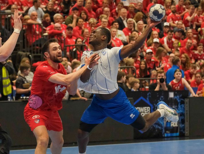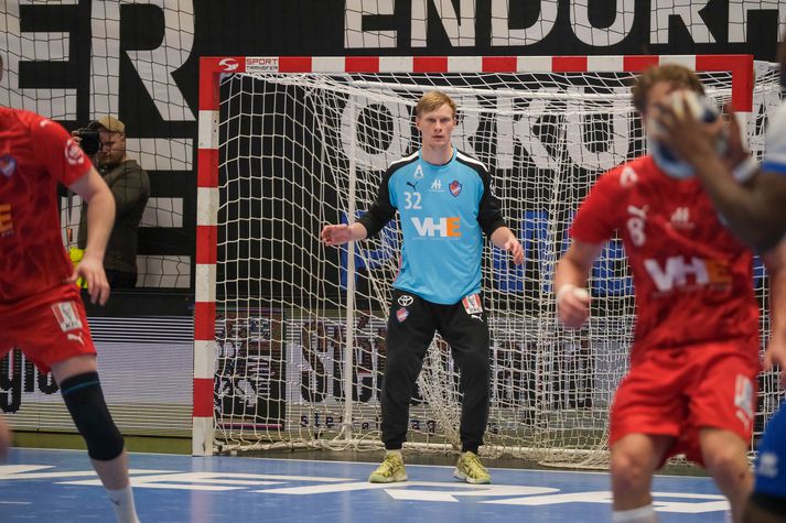 Haukar urðu í kvöld bikarmeistarar í handbolta karla eftir sannfærandi 28-21 sigur liðsins gegn ÍR í úrslitaleik keppninnar í Kuehne+Nagel höllin að Ásvöllum. Þetta er í áttunda skiptið sem Haukar verða bikarmeistarar í karlaflokki í handbolta. Leikmenn Hauka tóku leikinn föstum tökum strax frá upphafi leiksins og ÍR-ingar þurftu að hafa gríðarlega mikið fyrir hverju marki sem þeir skoruðu. Varnarmúr Hauka var þéttur og þar fyrir aftan var Grétar Ari Guðjónsson í miklum ham. Grétar Ari varði 19 skot í leiknum, þar af eitt vítakast og var með rúmlega 50 prósent markvörslu. Lítið var skorað í upphafi leiks en Haukar byggðu þar hægt og rólega upp þægilegt forskot en staðan var 5-1 um miðbik fyrri hálfleiks. Grétar Ari Guðjónsson varði vel á bakvið þétta vörn Haukaliðsins. Vísir/Anton Brink Þegar liðin gengu til búningsherbergja í hálfleik var staðan 14-6 Haukum í vil og staðan svört fyrir Breiðhyltinga. ÍR-ingum gekk betur að finna netmöskvana á marki Hauka í seinni hálfleik og Ólafur Rafn Gíslason átti fína innkomu í mark liðsins. Haukar hleyptu aftur á móti aldrei spennu í þennan leik og fóru að lokum með sjö marka sigur af hólmi og tryggðu sér fyrsta bikarmeistaratitil sinn í 12 ár. Þessi lið leiddu saman hesta sína árið 2014 og þar höfðu Haukar einnig betur. Össur Haraldsson, fyrirliði Hauka, fagnar marki með stuðningsmönnum liðsins. Vísir/Anton Brink Atvik leiksins Með hverju skotinu sem Grétar Ari varði og í hvert skipti sem árás leikmanna ÍR lenti á varnarvegg Hauka drógu þeir tennurnar úr leikmönnum ÍR-liðsins. Fögnuður Hauka innan vallar sem utan í lok leiks var ósvikinn og ljóst að hungrið í bikar eftir þurrð var gríðarlegt. Stjörnur og skúrkar Áðurnefndur Grétar reyndist ÍR-ingum einkar erfiður og Darri Aronsson var frábær í miðjublokk Hauka. Bróðir hans, Freyr, stýrði sóknarleik Hauka styrkri hendi en markaskorun liðsins dreifðist á margar hendur. Freyr og Birkir Snær Steinsson voru markahæstir með sex mörk hvor og Össur Haraldsson kom næstur með fjögur mörk. Adam Haukur Baumruk og Þráinn Orri Jónsson dreifðu svo álaginu sín á milli í hjarta varnarinn og sáu til þess að ákefðin í varnarleiknum minnkaði aldrei. Bernard Darkoh var óþreytandi við það að freista þess að brjóta vörn Hauka á bak aftur. Vísir/Anton Brink Bernard Darkoh fann oftast glufu á vörn Hauka og skoraði sjö mörk í leiknum og var atkvæðamestur hjá ÍR-liðinu sem getur gengið stolt frá borði frá þessum leik. Freyr Aronsson skorar eitt af mörkum sínum í leiknum. Vísir/Anton Brink Dómarar leiksins Dómarar leiksins, þeir, Sigurður Hjörtur Þrastarson og Svavar Ólafur Pétursson, höfðu góð tök á þessum leik og létu hann flæða vel. Leyfðu hæfilega mikið og lögðu sitt að mörkum til þess að leikurinn var góð skemmtun. Þeir fá átta í einkunn fyrir sín störf. Stemming og umgjörð Það var fullt hús að Ásvöllum í kvöld og bæði lið fengu afskaplega góðan stuðning í þessum leik. Umgjörðin var til fyrirmyndar og allir sem komu að þessum leik voru handboltanum til sóma. Aron Rafn Eðvarðsson og Össur Haraldsson, fyrirliðar Hauka, lyfta bikarnum að leik loknum. Vísir/Anton Brink