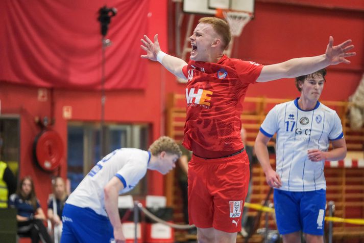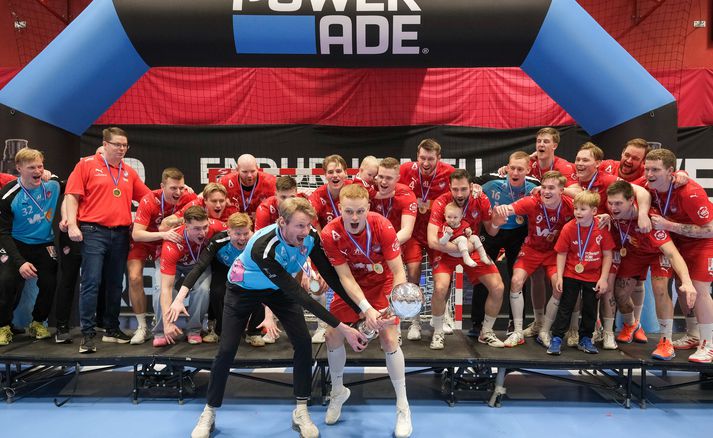 Uppgjörið: Haukar - ÍR 28-21 | Haukar of stór biti fyrir ÍR Hjörvar Ólafsson skrifar 28. febrúar 2026 20:06 Haukar eru bikarmeistarar í handbolta karla árið 2026. Vísir/Anton Brink Haukar urðu í kvöld bikarmeistarar í handbolta karla eftir sannfærandi 28-21 sigur liðsins gegn ÍR í úrslitaleik keppninnar í Kuehne+Nagel höllin að Ásvöllum. Þetta er í áttunda skiptið sem Haukar verða bikarmeistarar í karlaflokki í handbolta. Leikmenn Hauka tóku leikinn föstum tökum strax frá upphafi leiksins og ÍR-ingar þurftu að hafa gríðarlega mikið fyrir hverju marki sem þeir skoruðu. Varnarmúr Hauka var þéttur og þar fyrir aftan var Grétar Ari Guðjónsson í miklum ham. Grétar Ari varði 19 skot í leiknum, þar af eitt vítakast og var með rúmlega 50 prósent markvörslu. Lítið var skorað í upphafi leiks en Haukar byggðu þar hægt og rólega upp þægilegt forskot en staðan var 5-1 um miðbik fyrri hálfleiks. Grétar Ari Guðjónsson varði vel á bakvið þétta vörn Haukaliðsins. Vísir/Anton Brink Þegar liðin gengu til búningsherbergja í hálfleik var staðan 14-6 Haukum í vil og staðan svört fyrir Breiðhyltinga. ÍR-ingum gekk betur að finna netmöskvana á marki Hauka í seinni hálfleik og Ólafur Rafn Gíslason átti fína innkomu í mark liðsins. Haukar hleyptu aftur á móti aldrei spennu í þennan leik og fóru að lokum með sjö marka sigur af hólmi og tryggðu sér fyrsta bikarmeistaratitil sinn í 12 ár. Þessi lið leiddu saman hesta sína árið 2014 og þar höfðu Haukar einnig betur. Össur Haraldsson, fyrirliði Hauka, fagnar marki með stuðningsmönnum liðsins. Vísir/Anton Brink Atvik leiksins Með hverju skotinu sem Grétar Ari varði og í hvert skipti sem árás leikmanna ÍR lenti á varnarvegg Hauka drógu þeir tennurnar úr leikmönnum ÍR-liðsins. Fögnuður Hauka innan vallar sem utan í lok leiks var ósvikinn og ljóst að hungrið í bikar eftir þurrð var gríðarlegt. Stjörnur og skúrkar Áðurnefndur Grétar reyndist ÍR-ingum einkar erfiður og Darri Aronsson var frábær í miðjublokk Hauka. Bróðir hans, Freyr, stýrði sóknarleik Hauka styrkri hendi en markaskorun liðsins dreifðist á margar hendur. Freyr og Birkir Snær Steinsson voru markahæstir með sex mörk hvor og Össur Haraldsson kom næstur með fjögur mörk. Adam Haukur Baumruk og Þráinn Orri Jónsson dreifðu svo álaginu sín á milli í hjarta varnarinn og sáu til þess að ákefðin í varnarleiknum minnkaði aldrei. Bernard Darkoh var óþreytandi við það að freista þess að brjóta vörn Hauka á bak aftur. Vísir/Anton Brink Bernard Darkoh fann oftast glufu á vörn Hauka og skoraði sjö mörk í leiknum og var atkvæðamestur hjá ÍR-liðinu sem getur gengið stolt frá borði frá þessum leik. Freyr Aronsson skorar eitt af mörkum sínum í leiknum. Vísir/Anton Brink Dómarar leiksins Dómarar leiksins, þeir, Sigurður Hjörtur Þrastarson og Svavar Ólafur Pétursson, höfðu góð tök á þessum leik og létu hann flæða vel. Leyfðu hæfilega mikið og lögðu sitt að mörkum til þess að leikurinn var góð skemmtun. Þeir fá átta í einkunn fyrir sín störf. Stemming og umgjörð Það var fullt hús að Ásvöllum í kvöld og bæði lið fengu afskaplega góðan stuðning í þessum leik. Umgjörðin var til fyrirmyndar og allir sem komu að þessum leik voru handboltanum til sóma. Aron Rafn Eðvarðsson og Össur Haraldsson, fyrirliðar Hauka, lyfta bikarnum að leik loknum. Vísir/Anton Brink Haukar ÍR Powerade-bikarinn