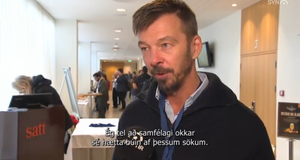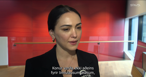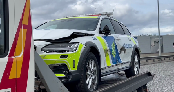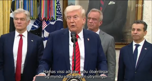 Rútu á vegum ME travel var ekið inn á grasið við Höfða í Borgartúni.
